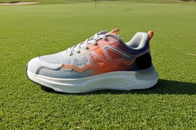 ট্রেন্ডি গ্র্যাডিয়েন্ট ডিজাইন: জুতার আপার অংশে ব্যবহৃত হয়েছে কমলা, নীল এবং ধূসরের একটি অত্যাধুনিক রঙের গ্র্যাডিয়েন্ট মিশ্রণ। এই ডিজাইন এটিকে একটি গতিময়, নজরকাড়া এবং প্রিমিয়াম ফ্যাশন লুক দিয়েছে।