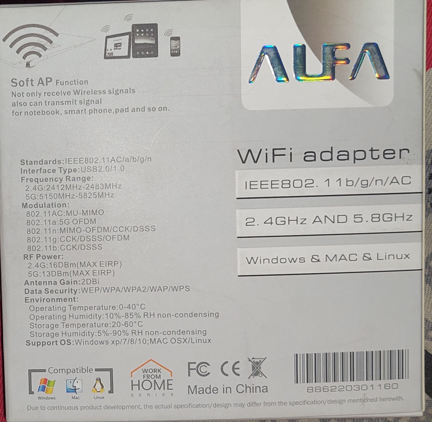 Based on the image provided, this is a box for an ALFA WiFi adapter.